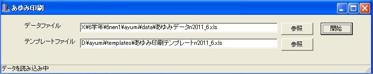 パスワードは、大文字・小文字はそのまま入力します。[OK]ボタンをクリックッすると、データフ ァイルと印刷テンプレートを選択する[あゆみ印刷]メニュー画面が起動します。