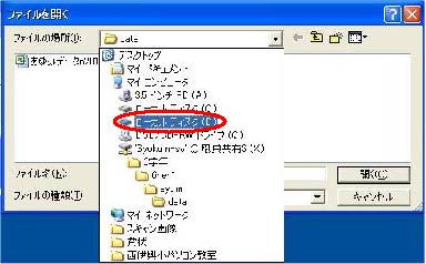 1)[ファイルを開く]画面→[ファイルの場所(I)]の[▼]をクリックし